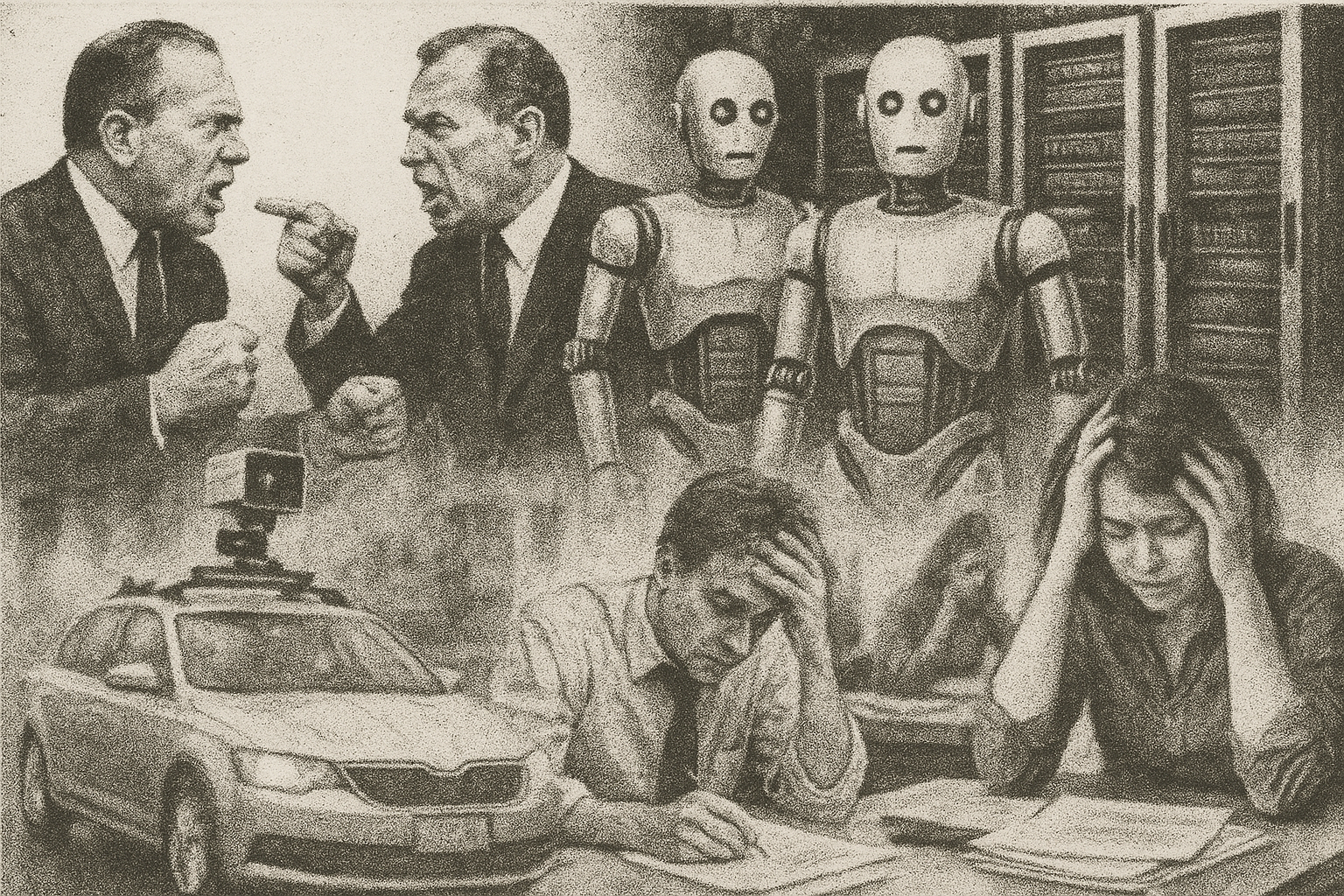 Today the shine comes off AI as office workers say it adds chores instead of cutting them... Big cloud giants talk about slashing jobs to build more humming computer caverns... Open source fans argue over the future of Linux and the soul of sharing... Office workers stare at glowing screens until their eyes scream, while tiny neural swarms dance across research demos... Old‑school tools like RSS and hand‑tuned search fight back against bloated hype... In the middle of it all, we watch companies lock their own AI agents in digital cages and call it safety.